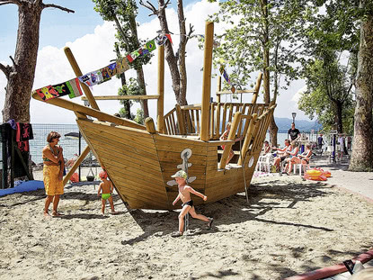 Für alle, die einen Wanderurlaub mit Badeferien verbinden möchten, ist der Gardasee genau das richtige Reiseziel. Italiens größter See liegt im Norden des Landes und ist über den Brenner kommend unkompliziert mit dem Auto zu erreichen. Ein Bahnanschluss besteht nach Peschiera del Garda und Desenzano del Garda am Südufer. Zahlreiche der schönen Kiesel- und Sandstrände des Gardasees verfügen über Restaurants, Eiscafés, Beachvolleyplätze und Picknickbänke, sodass einem gelungenen Sommertag am Wasser nichts im Wege steht. An vielen Badestellen haben Sie die Möglichkeit, sich ein Ruderboot oder Tretboot auszuleihen und Ihr Feriendomizil bei einer Bootstour mit der Familie vom Wasser aus zu erkunden. Ein Strandtipp für einen Gardasee-Familienurlaub ist die landschaftlich reizvolle Meerjungfrauenbucht – die "Baia delle Sirene" – in San Vigilio am Ostufer. Gesäumt von mediterranen Olivenhainen gibt es hier viele kinderfreundliche Angebote wie einen großen Spielplatz und Kinderanimationen. Für Begeisterung bei Bade-Fans sorgen auch die Spaßbäder und Wasserparks rund um den See.