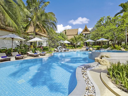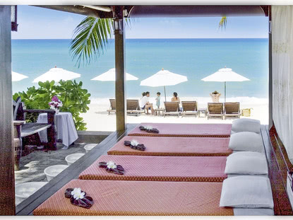 Thailand ist das perfekte Urlaubs-Ziel für Sonnenhungrige. Nur etwa 35 Kilometer vom Festland entfernt liegt die paradiesische Insel Koh Samui mitten im Golf von Thailand. Die Anreise erfolgt ganz unkompliziert mit dem Flieger von der thailändischen Hauptstadt Bangkok aus. In dem Sonnenparadies herrscht ein tropisches Klima mit ganzjährigen Temperaturen von durchschnittlich 30°C. Für Ferien auf Koh Samui bieten sich besonders die Frühjahresmonate an, da diese Jahreszeit die wenigsten Regentage hat. Wahrzeichen der Insel ist der Big Buddha, den Sie schon beim Landeanflug aus der Vogelperspektive bestaunen können. Die vergoldete Buddha-Statue ist das Ziel vieler gläubiger Buddhisten und ein beeindruckendes Fotomotiv. Besuchen Sie in Ihren Ferien Koh Samui eine der traditionellen, buddhistischen Tempelanlagen – in der Landessprache „Wat“ genannt. Außergewöhnlich ist der Wat Khun Aram. Sein bizarres Highlight ist ein mumifizierter Mönch, der hier im Jahre 1973 während der Meditation starb und sich noch heute in exakt derselben meditierenden Sitzhaltung befindet. Wer in den Ferien auf Koh Samui die pure Entspannung sucht, ist an einem der kilometerlangen, weißen Traumstrände genau richtig. Bei guter Lektüre können Sie Ihre Pauschalreise im Schatten der Kokospalmen genießen. Bei durchschnittlich 27°C Wassertemperatur werden Sie im kristallklaren Meer unbegrenztes Badevergnügen erleben. Ein echter Geheimtipp ist der Taling Ngam Beach. An diesem etwas abgelegenen und verträumten Strand finden Sie absolute Ruhe und Erholung. Durch die Strandlage im Südwesten der Insel erleben Sie hier am Abend einen unvergleichlich romantischen Sonnenuntergang über dem Meer.