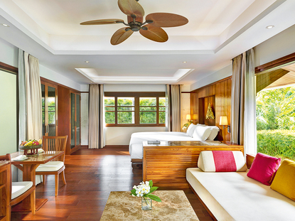 In Ihren Ferien auf Koh Samui bieten sich Ihnen vielfältige Möglichkeiten zur Freizeitgestaltung und zum Erkunden der einzigartigen Naturlandschaft. Ein lohnender Ausflug führt Sie auf einem steilen Pfad zum Overlap Stone. Sehenswert ist nicht nur der riesige Felsen, der scheinbar völlig mühelos auf einem kleineren Felsen balanciert. Auch die großartige Fernsicht auf die Küste Koh Samuis entschädigt Sie für den beschwerlichen Aufstieg. Auch die typischen Wasserfälle der Insel sind bei Ihrer Koh Samui-Reise unbedingt einen Besuch wert. Besonders schön ist der Na Muang Wasserfall, der an einem violett schimmernden Felsen laut tosend in ein Felsbecken stürzt. Packen Sie die Badehose ein, denn hier können Sie sich eine Erfrischung im kühlen Nass gönnen! Reisen entlang der Küste der tropischen Trauminsel lassen Sie die atemberaubende Unterwasserwelt Koh Samuis kennenlernen. Nehmen Sie an einem Tauchkurs teil oder bewundern Sie die faszinierenden Korallenriffe und die bunten Fischschwärme beim Schnorcheln in Ufernähe. Lassen Sie sich auf keinen Fall die Köstlichkeiten der thailändischen Küche entgehen. Bei scharfen Currys und frischen Meeresfrüchten ist für jeden Geschmack etwas dabei. Mutige probieren sich an frittierten Insekten, die Sie direkt an einem der vielen Marktstände kaufen können. Ihre Ferien auf Koh Samui bieten Ihnen die einmalige Gelegenheit, die traditionellen Techniken des Yoga kennenzulernen. Im Nordosten der Insel bietet Ihnen der idyllisch in einer palmenbewachsenen Anlage gelegene Yoga-Garden Schnupperkurse unter professioneller Anleitung – genau das Richtige, um Ihren Urlaub auf Koh Samui entspannt ausklingen zu lassen. Erleben Sie die Schönheit der thailändischen Sonneninsel. Buchen Sie jetzt Ihre preiswerten Ferien Koh Samui mit alltours ganz unkompliziert und sicher!