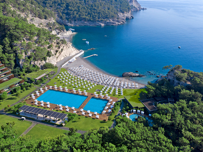 Kemer ist ein beliebter Badeort an der Türkischen Riviera, der voller Facetten steckt. Aktivurlauber werden die direkte Lage zum Taurus-Gebirge zu schätzen wissen, an dessen Fuße die türkische Stadt gelegen ist. In dem bis zu 3.000 Meter hohen Gebirgszug bieten sich Ihnen zahlreiche Wandermöglichkeiten während Ihrer Ferien in Kemer. Der Platz der Republik befindet sich im Zentrum von Kemer. Hier erblicken Sie einen strahlend weißen Uhrenturm. Mit einer Höhe von 38 Metern ist er der ganze Stolz der kleinen Stadt. Zudem säumen den Platz der Republik weitere Sehenswürdigkeiten wie das große Atatürk-Denkmal und die Wasserspiele. Nach einem Sonnenbad am Kieselstrand von Kiris entdecken Sie am Atatürk Boulevard die bekannteste Moschee des Badeortes. Vom Tahtali-Berg genießen Sie während Ihrer Ferien in Kemer einen atemberaubenden Ausblick auf die Region. Eine Seilbahn erspart Ihnen den beschwerlichen Aufstieg auf den Berg.