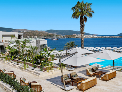 Im Westen der Türkei an der türkischen Ägäis liegt die Stadt Bodrum. Aufgrund zahlreicher historischer Stätten und feiner Sandstrände ist die Region bei Urlaubern sehr beliebt. Besonders der aufstrebende Nachbarort Gümbet erfreut sich wachsender Bedeutung. In Ihren Ferien in Bodrum Gümbet genießen Sie die optimale Lage des Ortes, wo verschiedene Unterhaltungsmöglichkeiten und die idyllische Ruhe in einer traumhaften Bucht auf Sie warten. Die malerische Ortschaft liegt eingebettet zwischen zwei Landzungen, während sich im Hintergrund die Ausläufer des Taurusgebirges erstrecken. Der feine, flach abfallende Sandstrand und das warme, kristallklare Mittelmeer sind ein wahres Paradies für Ihre Ferien am Meer. Wassersportler finden während ihrer Ferien in Bodrum Gümbet alles, was das Herz begehrt. Ideale Bedingungen laden zum Segeln oder Wasserskifahren ein und auch Surfer kommen in dieser Region voll auf ihre Kosten. Mit einem Jetski jagen Sie über das in der Sonne glitzernde Meer. Entdecken Sie bei einer gemütlichen Bootstour die paradiesischen Nachbarbuchten oder fahren zu einer der vorgelagerten Inseln. Von hier haben Sie einen einzigartigen Blick auf die Küstenlinie rund um Bodrum Gümbet.